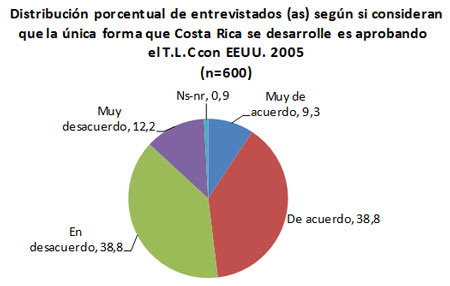 Distribución porcentual de entrevistados (as) según si consideran que la única forma que Costa Rica se desarrolle es aprobando el T.L.C con EEUU. 2005 (n=600) |
