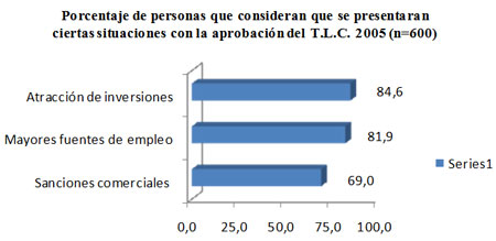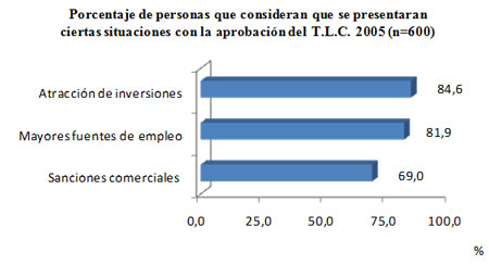 Porcentaje de personas que consideran que se presentaran ciertas situaciones con la aprobación del T.L.C. 2005 (n=600) |
